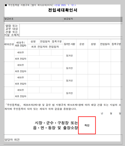 2) 전입세대 확인서 (2023.01.12 개정)