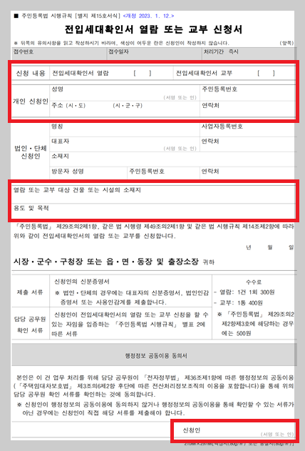 1) 주민등록 전입세대 열람 신청서(2023.01.12 개정)