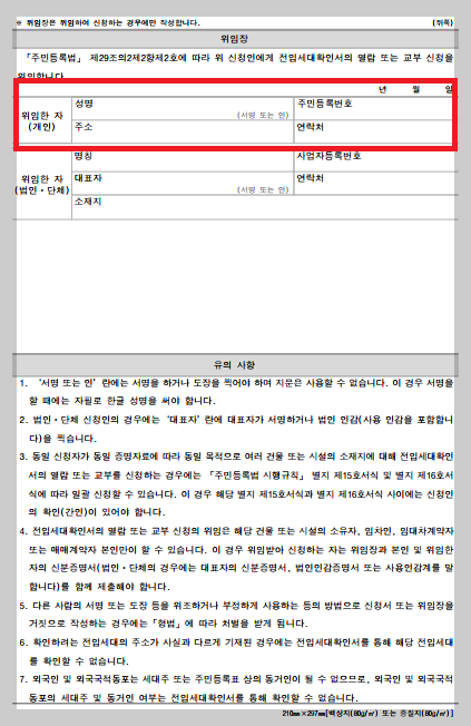 신청자 자격 중 소유자나 임차인은 그 세대원이 열람할 수 있는데요. 이때는 위임장이 반드시 들어가야 합니다. 또한 세대주의 신분증과 세대원의 신분증을 확인할 수 있으니 필수로 지참해야 할 것입니다.