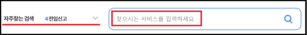 검색창에 전입신고를 검색하거나 자주 찾는 검색에서 전입신고를 클릭합니다.