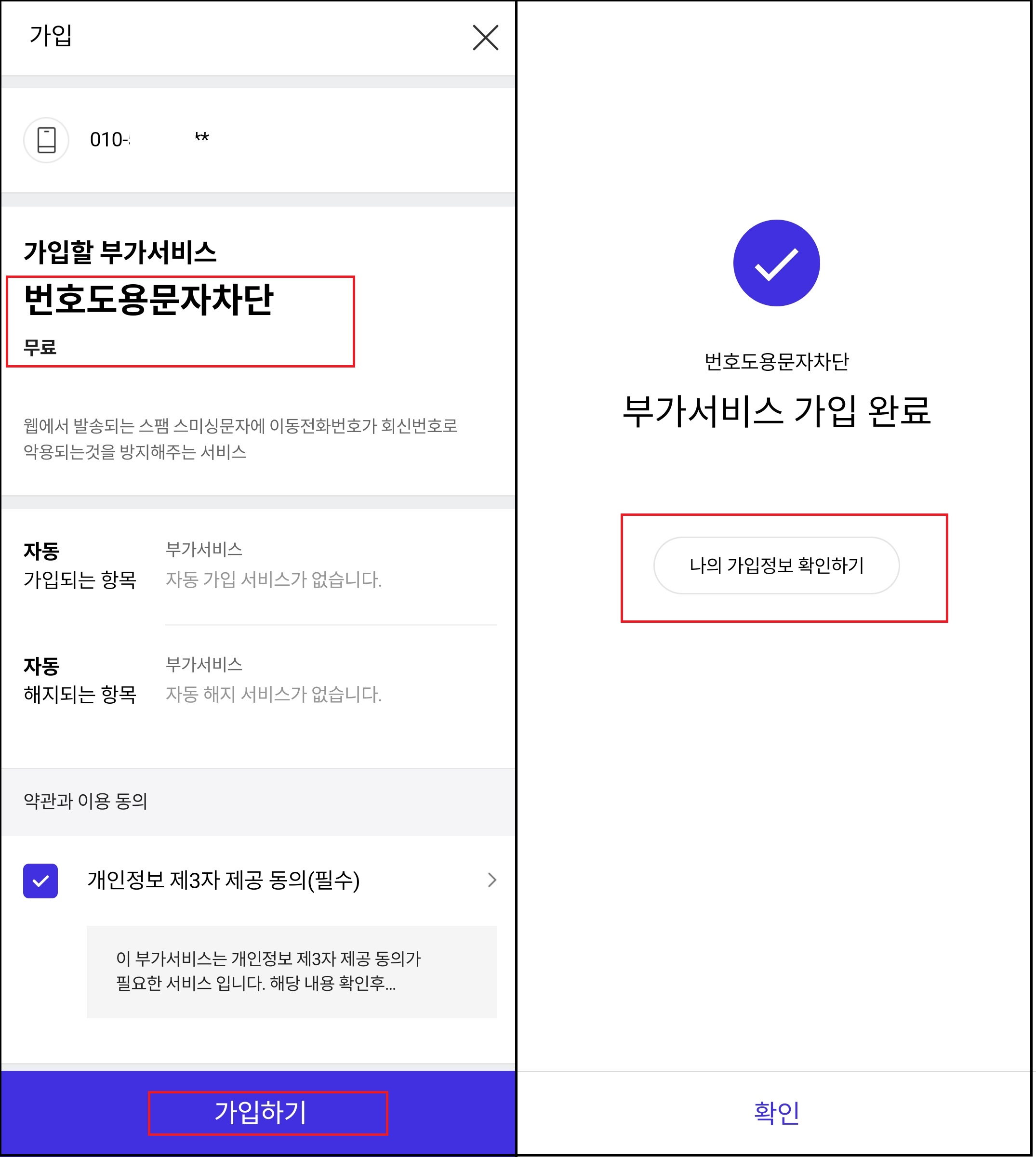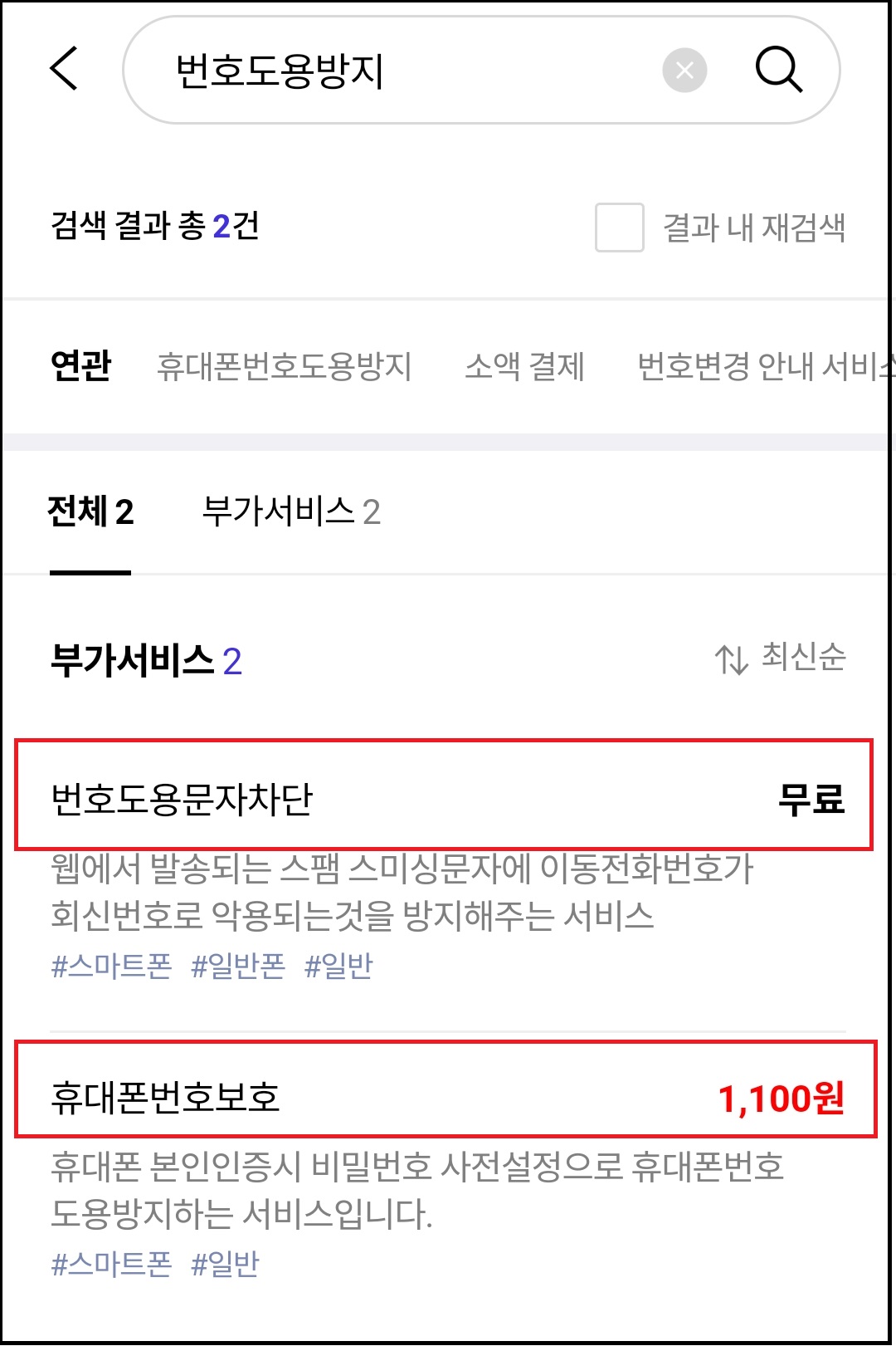 서비스 가입을 진행하다 보니 내 정보 보호가 되는 다른 서비스도 눈에 띄었는데요. [휴대폰번호보호]라는 유료서비스입니다. 이 두 서비스에는 어떤 차이점이 있을까요?