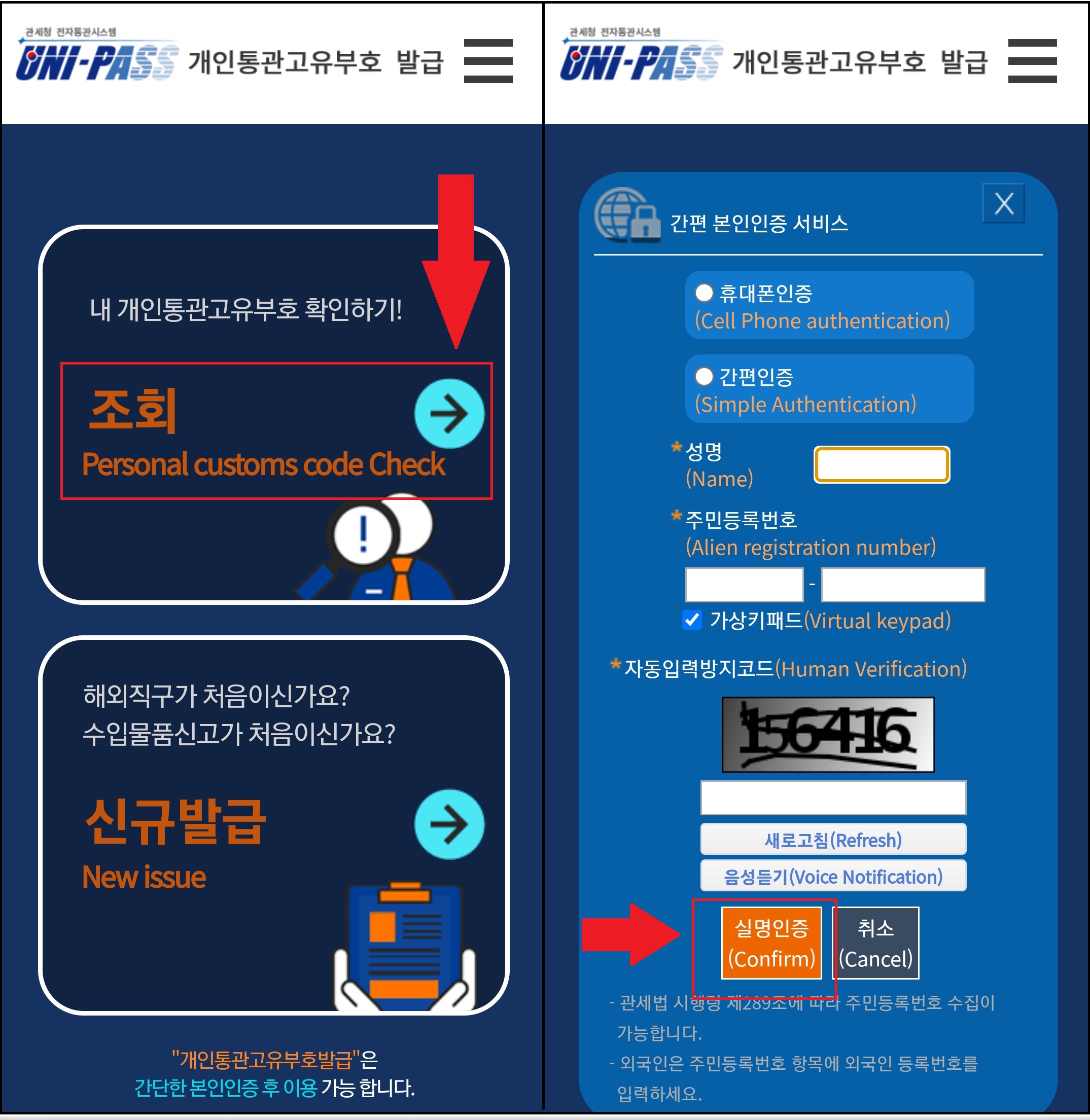 - 웹 사이트에서 개인통관고유부호를 검색해서 관세청 전자시스템인 유니패스로 들어갑니다.