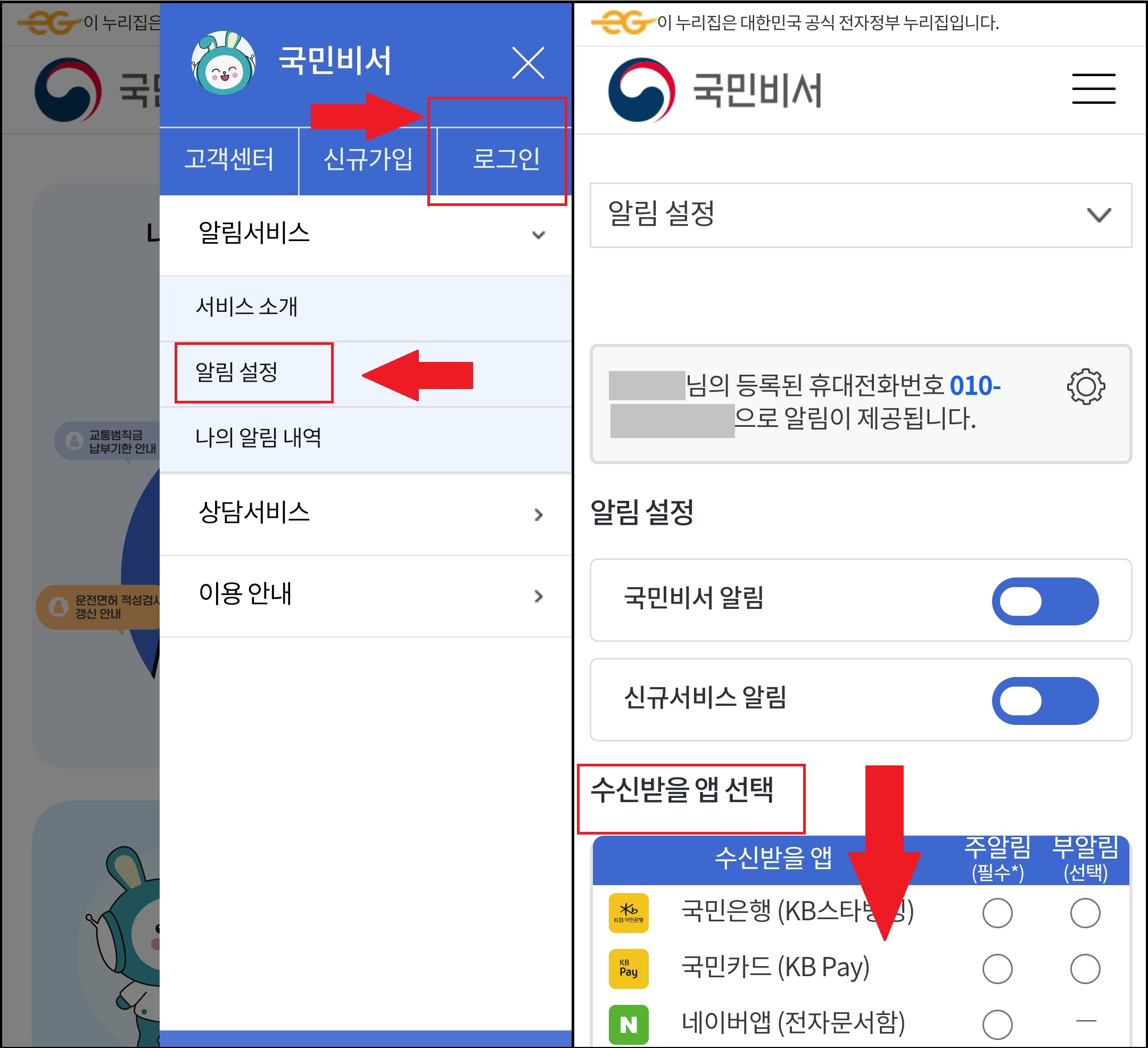 - 국민비서 홈화면 상단 삼선을 클릭합니다.