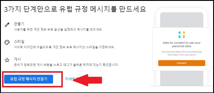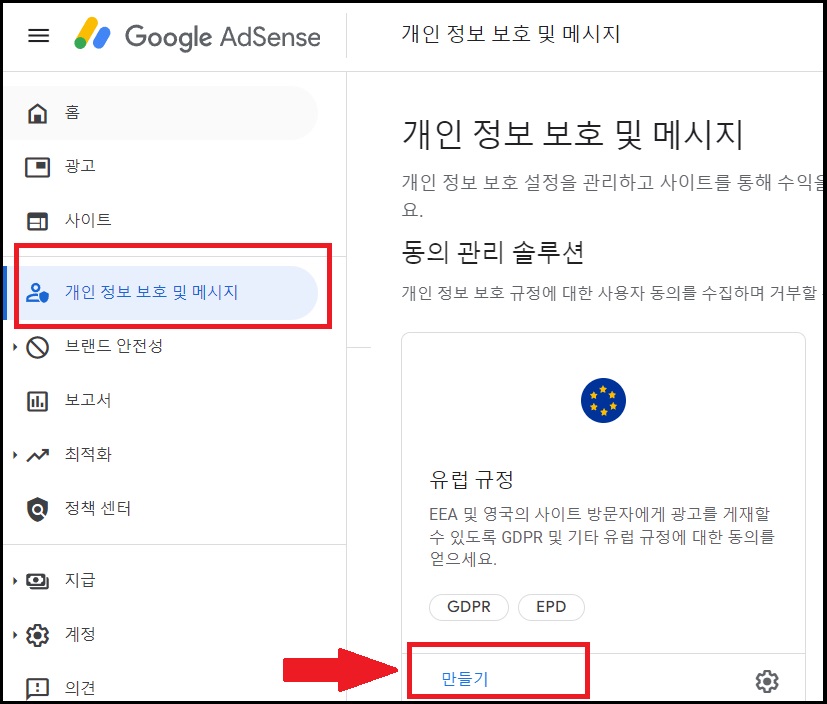 1) 구글 애드센스 개인 정보 보호 및 메시지 클릭