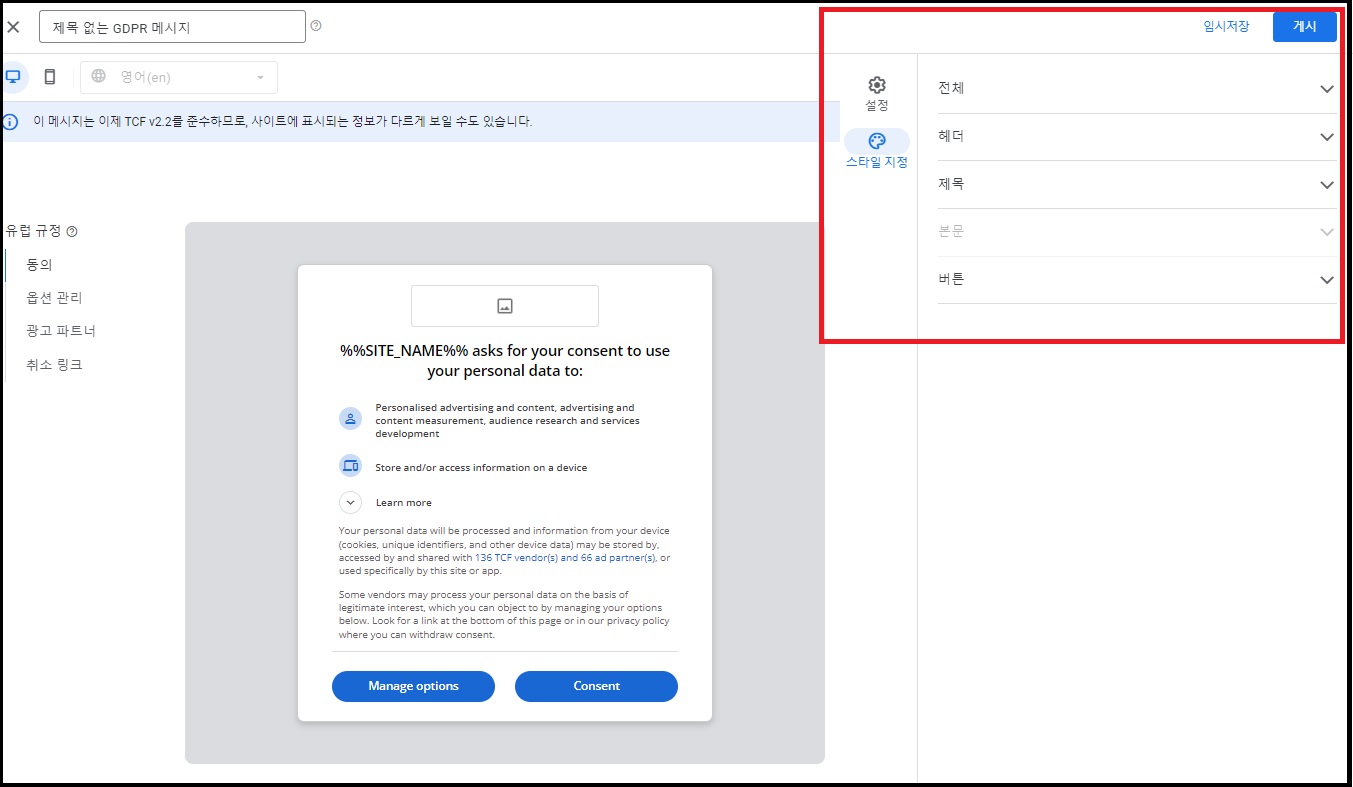 2) 동의 관리 솔루션에서 유럽 규정 GDPR 만들기 클릭