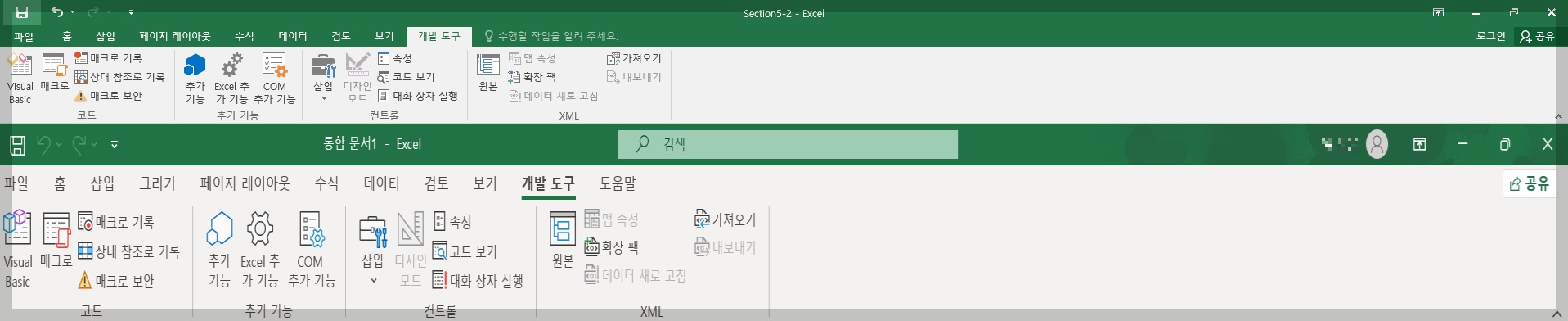 엑셀 개발도구 메뉴