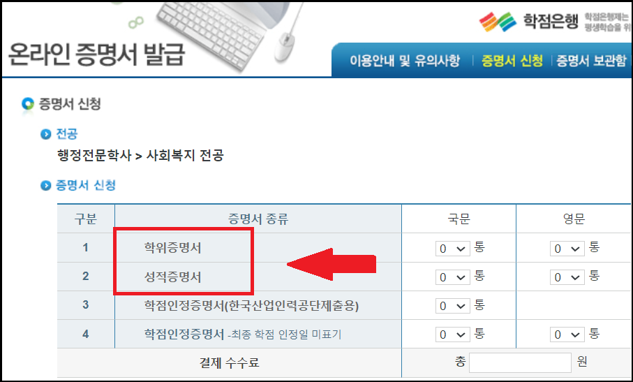 2) 학위증명서와 성적증명서 발급