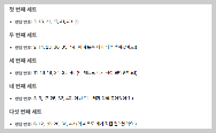 실제로 AI는 6개의 번호를 5세트 만들어서 보여 줍니다.