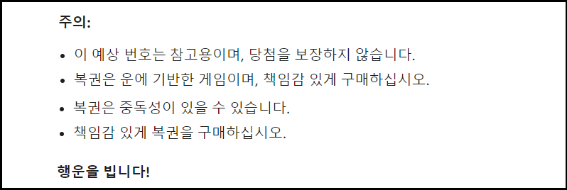 "이 예상 번호는 참고용이며, 당첨을 보장하지 않습니다"