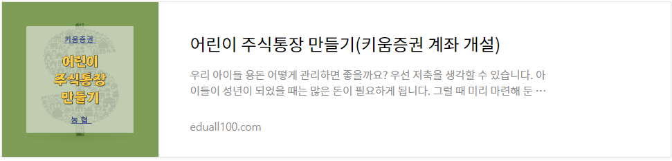 | 어린이 주식통장 만들기(키움증권 계좌 개설) (0) | 2023.03.13 |