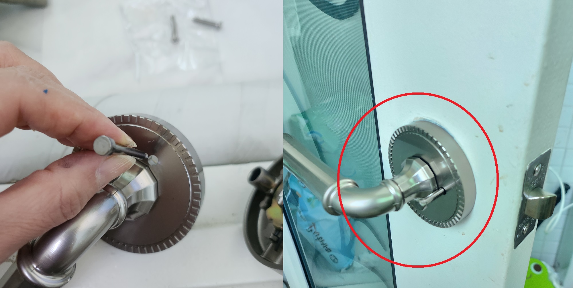 이후 손잡이 레버를 고정하고 잠근핀을 나사 끼우듯 래치의 홀더에 끼워주면 완성입니다.