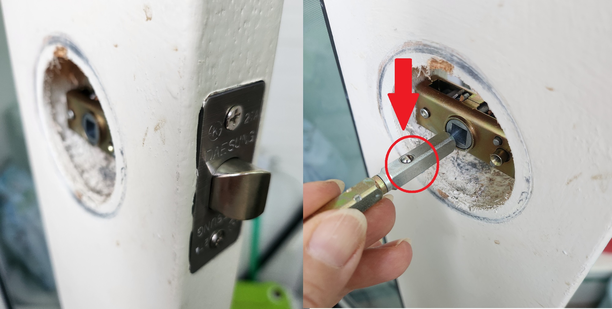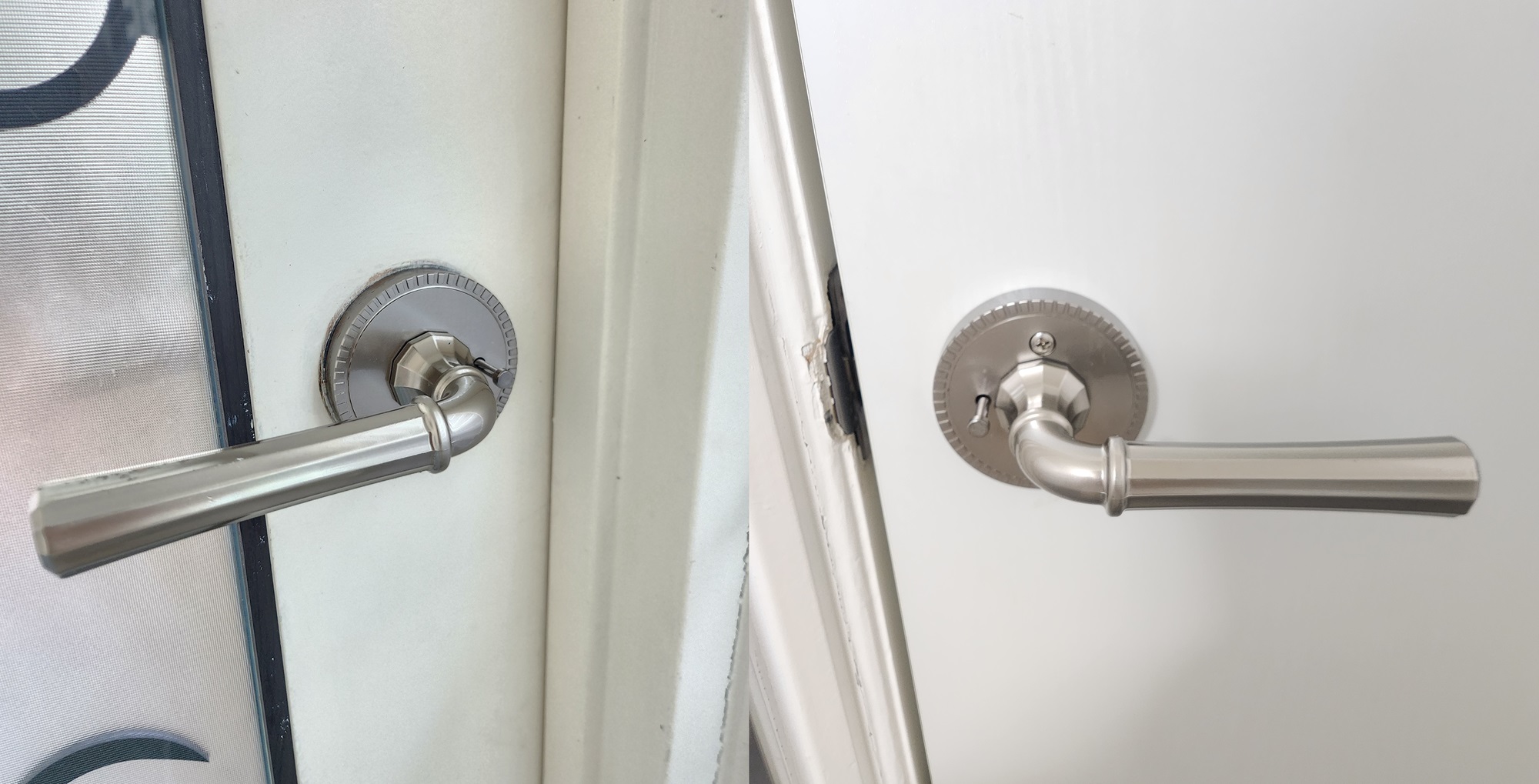 문 손잡이는 가까운 철물점이나 인터넷 쇼핑몰에서 구매하면 되는데요. 구매할 때 주의할 점이 있습니다. 기존에 달려 있는 손잡이의 크기와 비슷한 것을 구매하는 게 가장 좋은데요. 잘못 사면 문에 뚫려있는 구멍과 안 맞을 수 있기 때문입니다. 그리고 잠금장치가 열쇠인지 눌러서 열 수 있는 핀형인지 구분해서 구매를 하셔야 합니다.