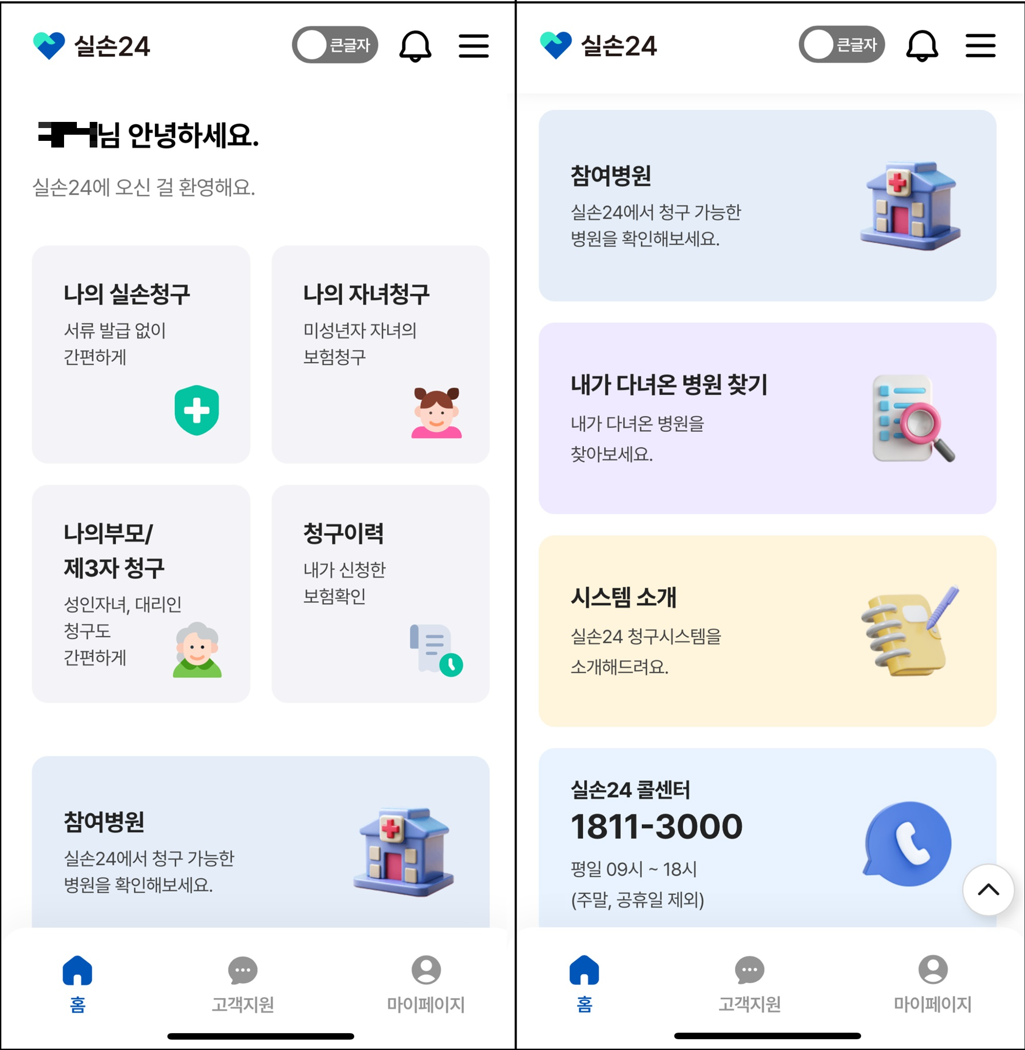 실손 24 사용방법은 일반 실손 청구 앱을 이용해 보신 분들이라면 쉽게 사용하실 텐데요. 기존의 실손청구 앱이 나 자신만 가능했던 반면 실손 24는 자녀, 부모 외 가족들, 심지어 제 3자 청구까지 가능합니다. 실손 24 앱을 이용한 청구 방법과 본인 외에 다른 사람 청구하는 방법까지 한번 살펴보도록 하겠습니다.