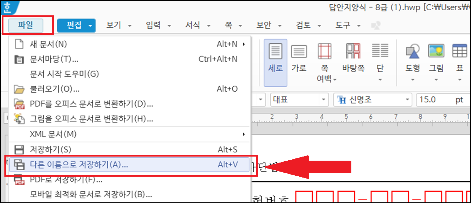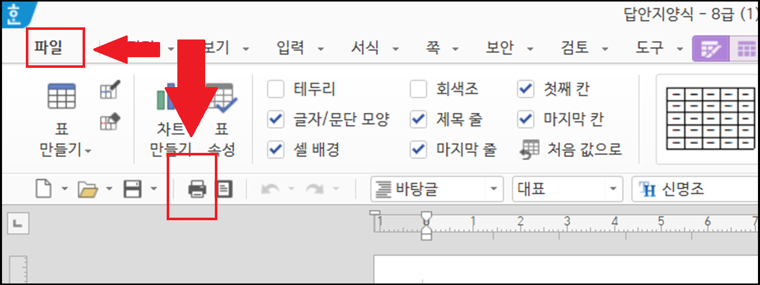 예를 들어 한자시험의 경우 한글 파일에 B4 사이즈로 되어 있는 경우가 많은데요.