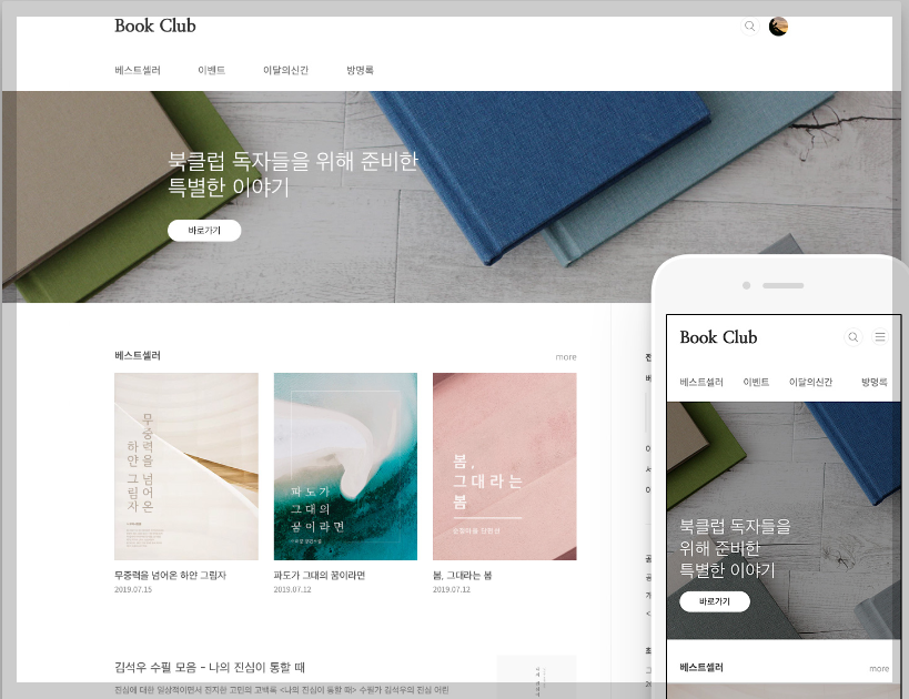 꾸미기-스킨변경에서 북클럽 스킨을 적용시킵니다.