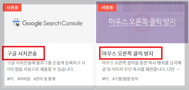 플러그인에서는 기본 사용 설정에 구글 서치콘솔과 마우스 오른쪽 클릭 방지를 추가로 적용해 줍니다.