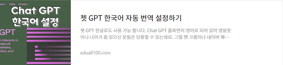 | 쳇 GPT 한국어 자동 번역 설정하기 (0) | 2023.04.16 |