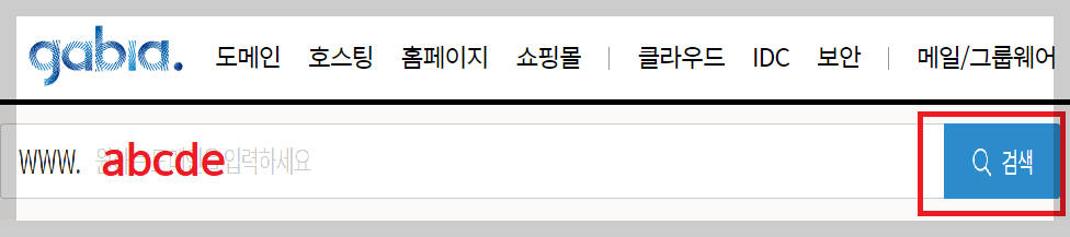 가비아로 들어가서 회원가입을 해 줍니다. 그후 홈화면 중앙에 있는 검색창에 도메인을 만들어 입력합니다. 되도록 짧은 것이 좋으며 영문, 숫자 가능합니다.