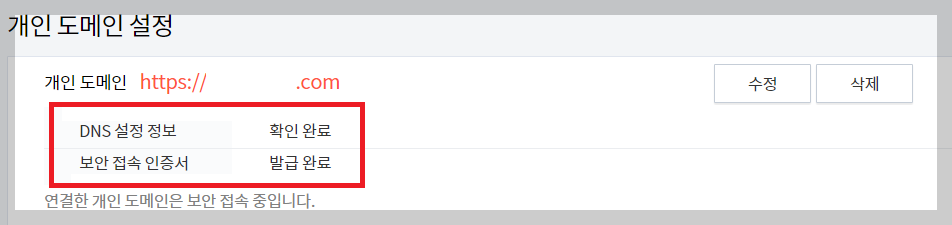 확인 완료와 발급완료가 나오면 설정 완료입니다.