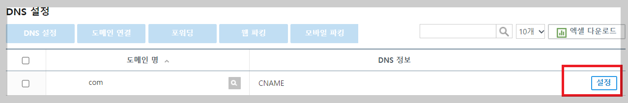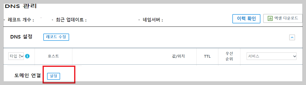 도메인을 연결을 위해 설정을 눌러 줍니다.