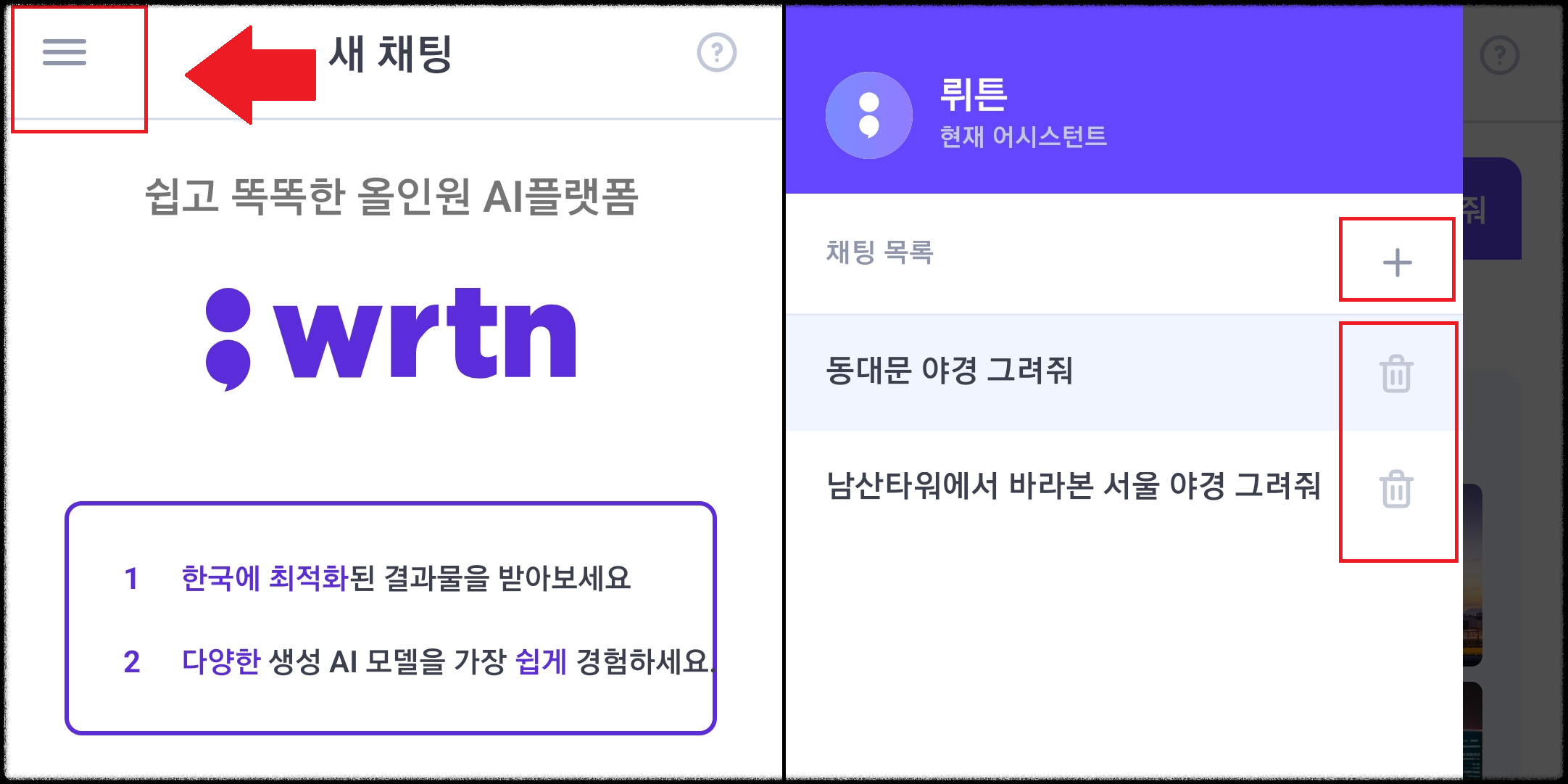 4. 뤼튼 채팅 추가 또는 삭제하기