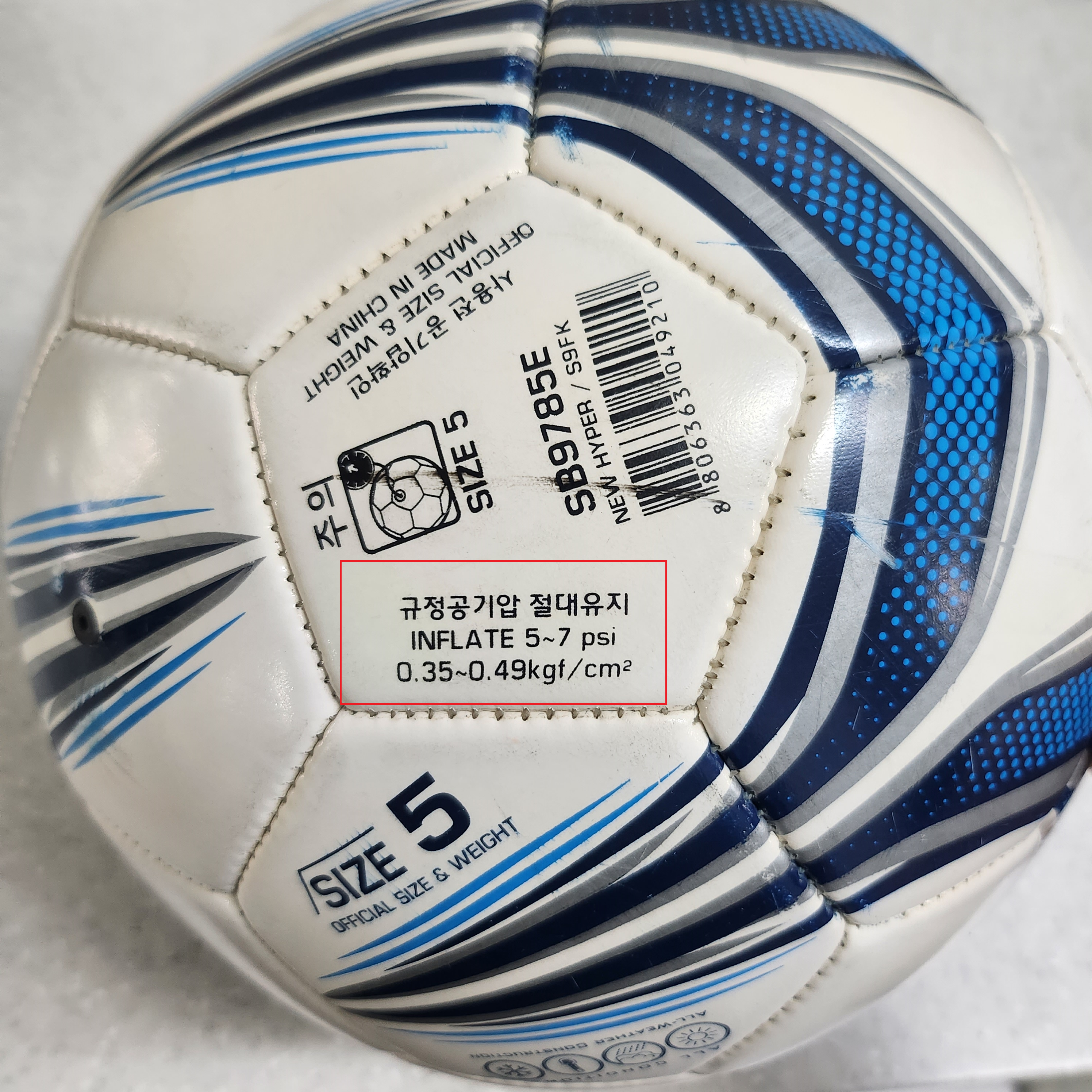농구공 공기 주입량 7~9 P.S.I. / 축구공 공기 주입량 5~7 P.S.I.