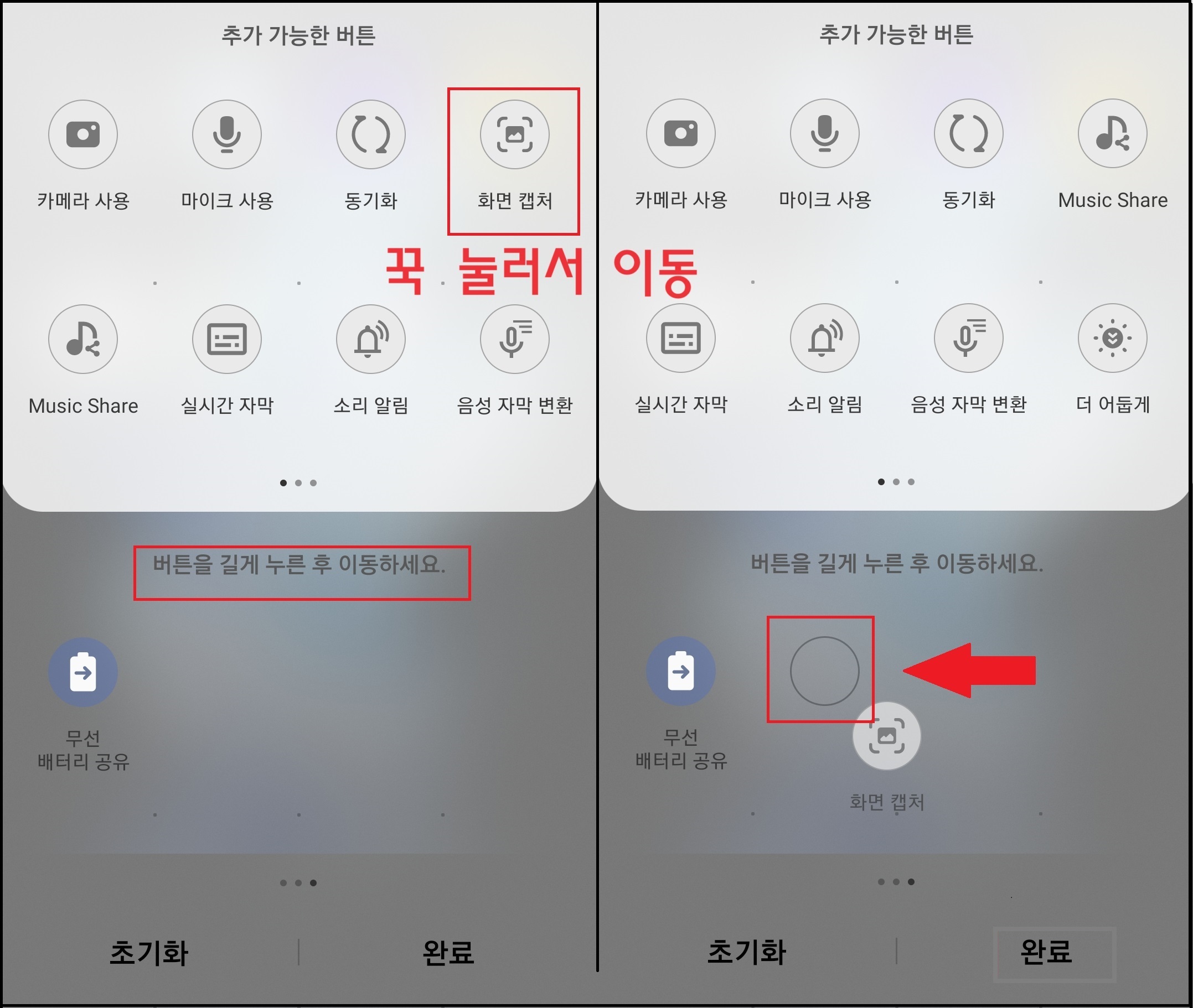 4) 화면 캡처 버튼을 첫 번째 화면으로 이동합니다.